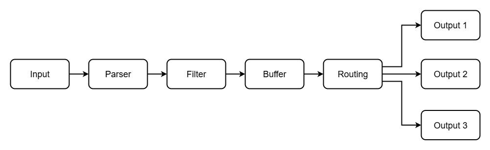 一個日誌在 Fluent Bit 中,會經過以下流程傳送到其它地方: